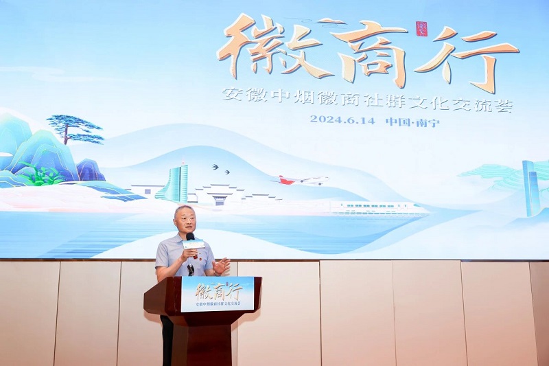 会长李传德在致词中说道:安徽中烟是徽商企业的杰出代表,因名山立名品,以名品树品牌,作为全国文化卷烟营销的领跑者,不仅拥有悠久的历史,同样拥有深厚的文化底蕴。徽烟的“甜润”,不仅是一种味觉的享受,更是心灵深处对“家”与“商道”的深刻理解与赞可认同。今天的“徽商行--南宁站”这个活动,是皖桂两地徽文化交流的一次盛会,是在弘扬徽商精神、打造徽商品牌,更是在展示家乡的精品与风貌。作为安徽人,有义务高举品牌旗帜,传播徽商文化,不断提升自我,谋求创新发展,更好地助推皖桂两地徽文化的交流交融。作为安徽人,要携起手来为家乡的企业服务赋能、搭建平台,利用各种活动嫁接、引领消费,助力中烟徽商品牌占领广西市场,助推家乡品牌企业深耕广西,进一步提升徽商企业品牌力、影响力。希望通过“徽商行”这一平台,能够有更多机会将徽商精神与广西南宁这片热土紧密结合,碰撞出更多合作与创新的火花。
